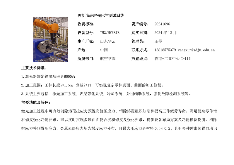 再制造表层强化与测试系统