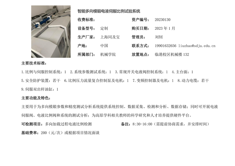 智能多向模锻电液伺服比例试验系统
