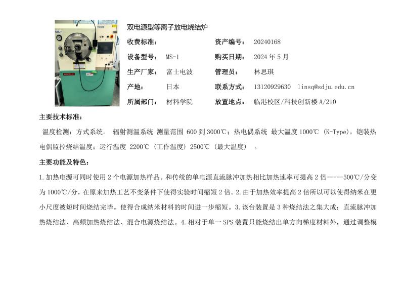 双电源型等离子放电烧结炉